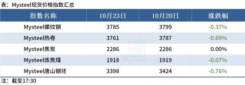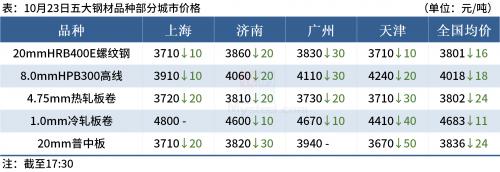 ◎10月23日,唐山迁安普方坯资源出厂含税下调30,报3370元/吨。