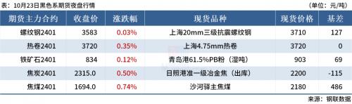 ◎10月23日,全国主港铁矿石成交81.20万吨,环比增72.4%;237家主流贸易商建筑钢材成交15.13万吨,环比增18.4%。
