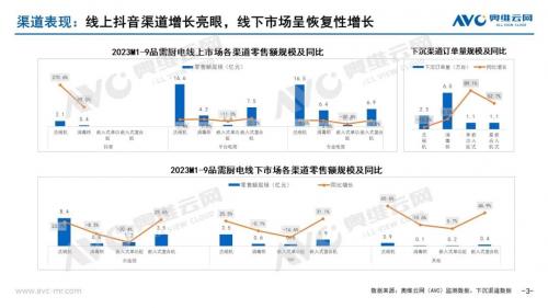 Z世代作为品需厨电目前的消费主力,更加偏好线上购物,线上消费持续升温,其中抖音等兴趣电商增长亮眼。根据奥维云网(AVC)监测数据,2023年1-9月洗碗机、消毒柜抖音渠道零售额分别同比增长270.6%、99.0%。线下渠道则由于疫情放开,门店快速复苏,增长明显,预计Q4线下将延续高增长态势。