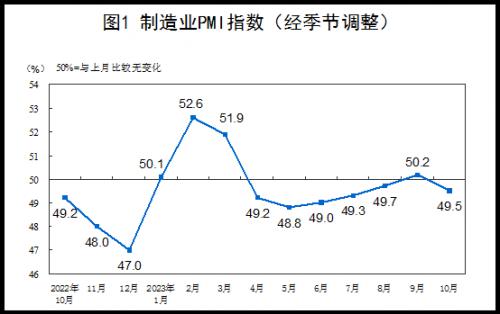 10月份,制造业采购经理指数(PMI)为49.5%,比上月下降0.7个百分点,降至收缩区间,制造业景气水平有所回落。