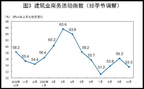 分行业看,建筑业商务活动指数为53.5%,比上月下降2.7个百分点;服务业商务活动指数为50.1%,比上月下降0.8个百分点。从行业看,铁路运输、航空运输、邮政、电信广播电视及卫星传输服务等行业商务活动指数位于60.0%以上高位景气区间;资本市场服务、房地产等行业商务活动指数低于临界点。