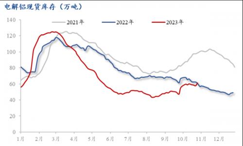 10月电解铝价格走势震荡偏弱,节后铝价出现大幅回落。虽然月底受国内宏观利好支撑,有所反弹,但随后铝价再度开启震荡下行的节奏,市场需求呈疲软状态。基本面看,云南召集省内电解铝企业商讨枯水期电力负荷管控事宜,市场对南方枯水期电力供应存在担忧,电解铝企业再度限产预期升温。初步预计压减15-20%负荷,折算年化减产产能或达85-113万吨,预计限产将于11月底开始实施。市场需求呈疲软状态,11月下游消费有转弱可能,铝价回落至相对低位,预计11月铝价维持区间震荡。