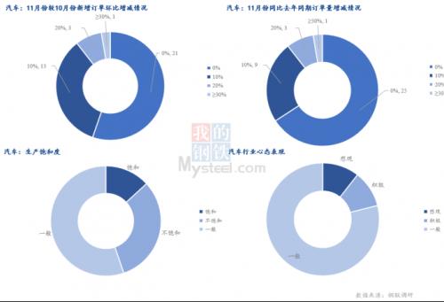 当下汽车生产企业反馈依旧不错,市场用钢量相较其他行业有所增加,主要原因是由于当前政策扶持增加,同时商用车以及家用车表现不错,部分新能源车企订单量进一步增加,传统车企逐步转型与造车新势力纷纷合作。从订单表现来看,无论环比上月还是同比去年同期,订单量都相对不错,并未出现缩减的情况。从生产饱和度来看,多数饱和企业仍以终端汽车生产企业为主,订单数相对较多,而其他相关配件企业生产并无较大明显变化,存在部分订单,但订单数并未呈现饱和生产。整体市场情绪仍维持平和的状态,对待传统车企压力依旧,预计汽车行业用钢量或将小幅增加但幅度不大。