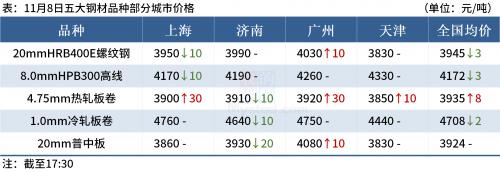 ◎11月8日,秦皇岛卢龙普方坯出厂含税上调20元/吨,报3570元/吨。