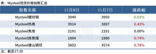 ◎截至11月8日,江苏地区钢厂铁水成本2777元/吨(不含税),张家港重废价格2550元/吨(不含税),铁水比废钢价格高174元/吨(注:已考虑到废钢入炉造成的损耗等问题,此数据仅为当天即时成本理论值)。