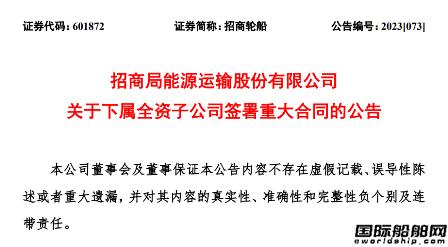 11月7日,招商轮船发布公告,公司第七届董事会第三次会议审议通过了《关于审议招商气运与中国石油国际事业有限公司下属子公司签订2艘LNG运输船舶长期运输协议的议案》,同意招商轮船液化天然气运输有限公司(下称“招商气运”)与中国石油国际事业有限公司(下称“中石油国事”)下属子公司签署2艘LNG运输船舶25年期长期租用协议,授权招商气运董事签署相关协议。