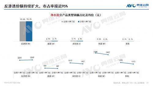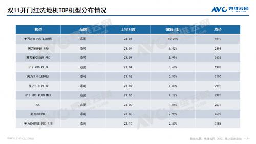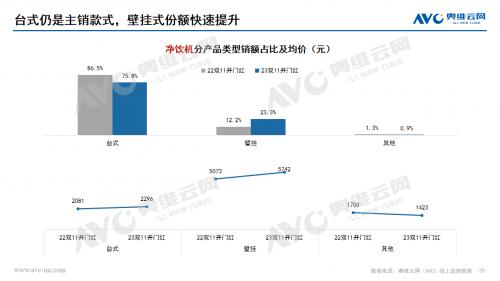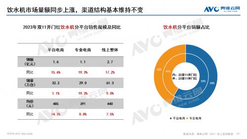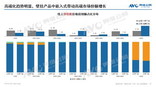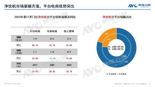 水家电:净水器市场在双十一开门红期间量额齐增,均保持两位数的上涨幅度。价格分布呈现向中间靠拢的趋势,2500-3500份额大幅上涨,产品升级迭代、推新趋势明显。净饮机市场在双十一开门红期间销额同比增长33.6%,销量同比增长12.6%,高端化趋势明显,产品功能集成升级和嵌入式产品发展带动整体市场格外红火。饮水机市场也是保持了量额齐增的状态,价格分布受到产品结构影响不断分化,低、高两端份额同步上涨,茶吧机占比份额持续提升,套餐热销带动管线机市场持续增长,桌面式产品均价下探。