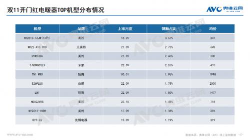 电暖器:双十一开门红期间电暖器量额齐降,开门红期间天气尚暖,需求还未释放。整体市场中存在价格下探趋势,300-400价格段份额增长明显,暖风机、电热油汀份额上升。