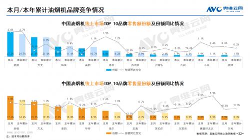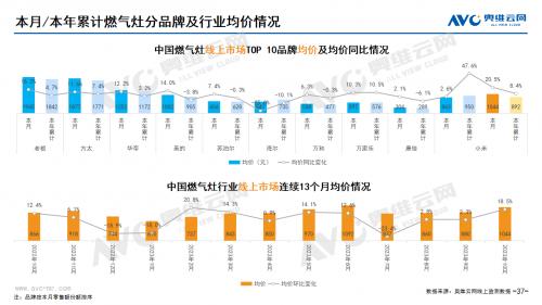厨卫:据奥维云网(AVC)线上市场监测数据显示,10月厨卫主要品类中,油烟机、燃气灶、洗碗机、集成灶、电热和燃热的线上零售额规模同比分别为21.3%、17.7%、9.2%、-10.5%、29.9%和9.7%;油烟机、燃气灶、洗碗机、集成灶、电热和燃热的均价分别为1809元、1044元、5018元、7999元、1198元和1966元,同比分别为5.8%、20.5%、9.1%、-2.9%、15.9%和9.9%;各品类中,高端品零售额占比分别为0.8%、6.6%、11.7%、11.4%、1.2%和5.2%,同比分别为-0.2%、4.2%、0.0%、7.8%、0.5%和-0.1%。
