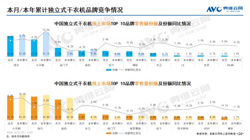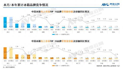 白电:据奥维云网(AVC)线上市场监测数据显示,10月白电各品类中,冰箱、冰柜、洗衣机、独立式干衣机和空调线上零售额规模同比分别为10.6%、-18.6%、-2.1%、-28.2%和25.9%;冰箱、冰柜、洗衣机、独立式干衣机和空调的均价分别为3159元、1300元、1770元、3602元和3164元,同比分别为9.9%、8.8%、4.1%、22.3%和-0.2%;各品类中,高端品零售额占比分别为6.2%、7.3%、0.8%、13.9%和5.0%,同比分别为1.5%、1.5%、-0.1%、7.2%和1.7%。