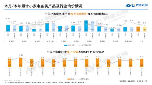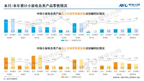 小家电:据奥维云网(AVC)线上市场监测数据显示,10月小家电线上零售额规模同比1.5%;均价为194元,同比1.7%;高端品零售额占比3.3%,同比0.4%。