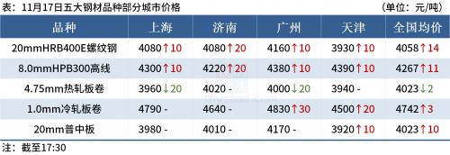 ◎11月17日,40家独立电弧炉建筑钢材钢厂平均成本为3940元/吨,日环比增加4元/吨。平均利润为58元/吨,谷电利润为156元/吨,日环比增加21元/吨。