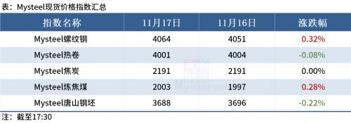 ◎11月17日,全国300家长、短流程代表钢厂废钢库存总量554.51万吨,较昨日增2.72万吨,增0.49%;库存周转天10天,较昨日持平;日消耗总量55.61万吨,较昨日增0.20%;日到货总量58.32万吨,较昨日增0.25%。