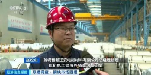 首钢智新迁安电磁材料有限公司总经理助理赵松山:电工钢海外销量增幅明显,为开拓全球市场,我们持续进行全球化的布局。推进高端产品在海外市场的认证,包括销售。