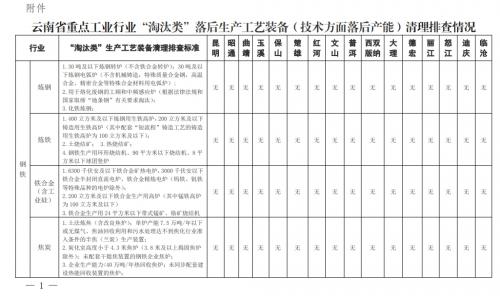 附件:云南省重点工业行业“淘汰类”落后生产工艺装备(技术方面落后产能)清理排查情况