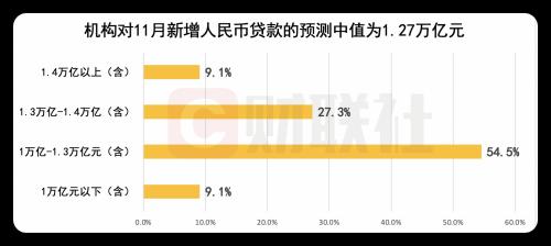 预计11月新增信贷同比多增,市场机构预测中值为1.27万亿元