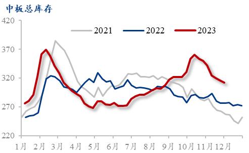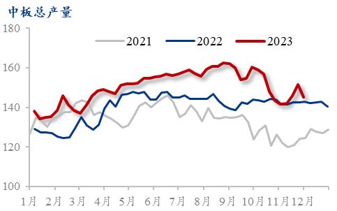 预计12月价格走势窄幅震荡。供应方面,成材价格持续拉涨,钢厂利润回升,生产积极性尚可,部分停产检修产线恢复生产。预计后续钢厂开工率、产能利用率呈现高位震荡态势。流通方面,前期由于钢厂产线检修,部分区域市场资源到货情况一般,尤其普板出现规格紧缺的情况,后期随着钢厂复产,资源到货情况或有所改善。需求方面,目前投机及补库需求略显谨慎,终端下游按需拿货为主,后续逐渐步入淡季后,下游采购需求将进一步缩减,预计后续需求方面难有增量。综合来看,需求整体弹性较小,后期将季节性回落,中板库存持续累增,供需矛盾累积,压力持续增加,下游采购节奏积极性表现一般,但成本支撑以及宏观预期将继续对价格形成托底效应,价格下行空间不大。预计12月价格将呈现窄幅震荡的态势。