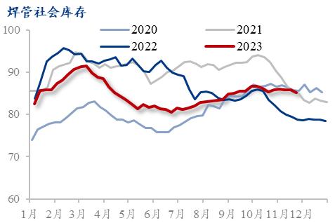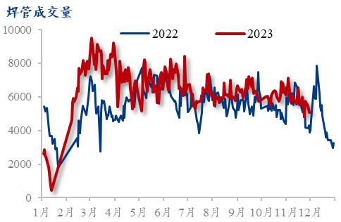预计12月焊管价格或将震荡运行。利润方面,原料带钢价格表现仍显强势,焊管成本支撑上移,管带价差收窄,焊管利润空间或仍会缩小。需求方面,目前淡季行情下,冷空气继续南下,下游施工条件变差,需求处于下滑趋势。库存方面,管厂出厂价格持续提涨,市场补库操作有所增加,不过市场对于目前高价资源接受度有限,后续补库持续性有待验证。情绪方面,价格持续拉涨,对于市场交投或起到相反作用,市场观望情绪或有增加。