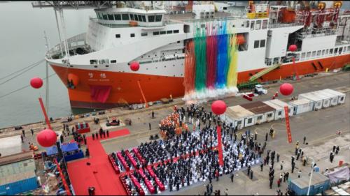 12月18日,我国自主设计建造的首艘大洋钻探船——“梦想”号命名暨首次试航活动在广州南沙举行,标志着我国深海探测能力建设和海洋技术装备研发迈出重要步伐。自然资源部党组成员、中国地质调查局局长李金发出席活动并致辞。中国地质调查局党组成员、副局长颜成义宣读命名文件。广东省人民政府副省长张少康,中国船舶集团党组成员、副总经理盛纪纲出席活动并致辞。中国地质调查局广州海洋局汇报大洋钻探船建设进展。