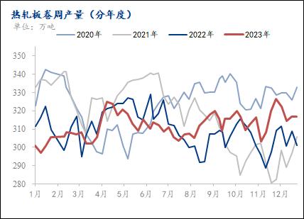 图1:热轧板卷周产量(分年度)