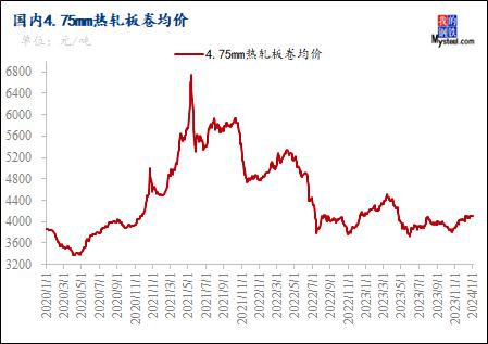 图5:国内4.75mm热轧板卷均价走势图