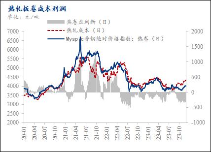 截止至1月2日,据Mysteel测算热轧即期生产成本为4389.61元/吨,较上月增加98.37元/吨,Myspic热卷价格指数为4099.02元/吨,月环比上涨90.57元/吨,热轧亏损为290.59元/吨,月环比反向扩大7.79元/吨。目前大部分热卷生产企业处于亏损状态,低于去年钢厂盈利水平约222.78元/吨。目前来看,目前板材生产端持续处于亏损状态,生产积极性有所降低。