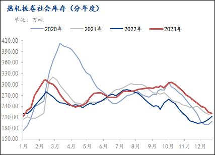 图4:热轧板卷社会库存(分年度)