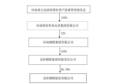 本次股权转让完成后,河南资本集团、河南钢铁集团均未直接持有公司股票,均通过其控股子公司、公司控股股东安钢集团持有公司人民币普通股股份1,918,308,486股,占公司股份总数的66.78%。股权结构如下图所示: