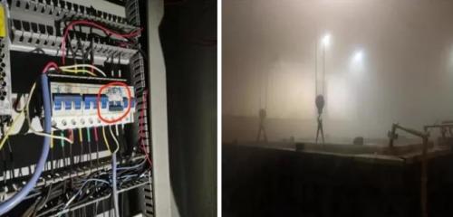 11月19日检查发现沧州市南皮县腾发金属材料有限公司配套的加碱泵电源开关未开启(左);生产车间酸雾弥漫(右)
