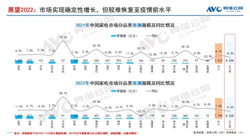 展望2022年,经济稳定持续复苏已是定局,但消费端预期持续承压。家电成本压力有望得以改善,无论是对生产端还是需求端均形成利好。但对于家电处于关注度较高的海运价格,目前来看仍无松动迹象。预计2021全年,我国家电零售市场规模达到7622亿元,同比增长4.1%。2022全年市场规模7795亿元,同比增长1.6%。