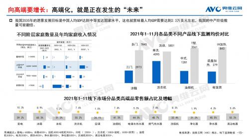 向高端要增长:我国2035年的愿景发展目标是中国人均GDP达到中等发达国家水平,这也就意味着人均GDP需要达到2.3万美元左右,我国的中产阶级数量可能翻倍。如果未来一定会发生,那么就先进入那个未来。高端化,就是正在发生的“未来”;此外,目前的家电市场低端需求几乎已全部转移至线上,高端需求正在全渠道全面布局并落地开花。高端化,也是无法回避的“未来”。