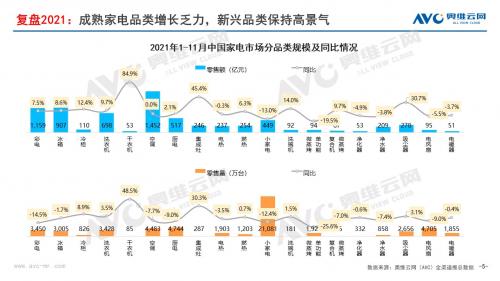 反观当前的中国家电市场,在地产红利消耗殆尽、渗透率逼近瓶颈、低频消费与弱周期属性、居民消费意愿减弱等诸多因素叠加下,也迈入了“无增长”时代。2021年,市场外部环境虽较2020年有所缓解但依旧恶劣,原材料价格上涨带来的成本压力高企,疫情分散爆发导致的区域发展不确定性,叠加消费者信心不足引致的需求释放不足等种种因素,截止到2021年11月,我国家电市场累计零售额规模为7022亿元,同比增长4.9%。但是如果与2019年同期相比,仍然下滑7.4个百分点。