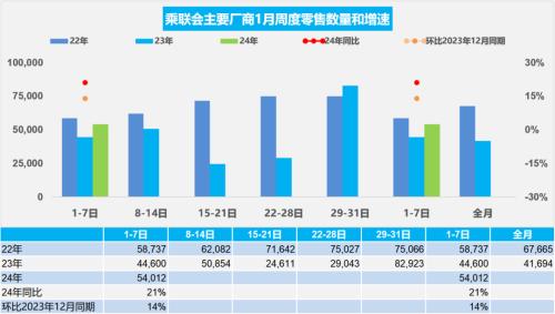 1月1-7日,乘用车市场零售37.8万辆,同比去年同期增长21%,较上月同期增长14%。