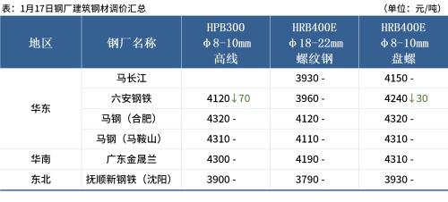 ◎1月17日,40家独立电弧炉建筑钢材钢厂平均成本为4026元/吨,日环比增加4元/吨。平均利润为5元/吨,谷电利润为104元/吨,日环比增加2元/吨。