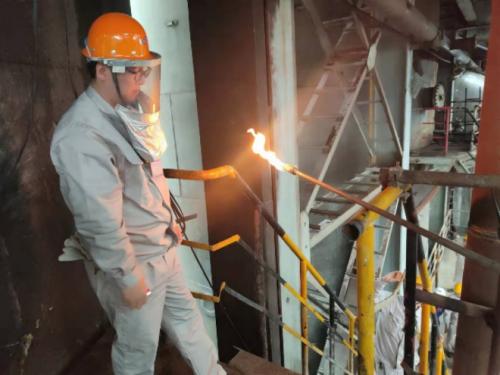 一是由于4号热风炉属于在原结构基础上的结构优化大修,生产不能停止,必须保证安全,豫兴人根据现场情况,利用4号热风炉与预热器之间的很小空间,上下搬运施工材料。