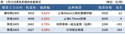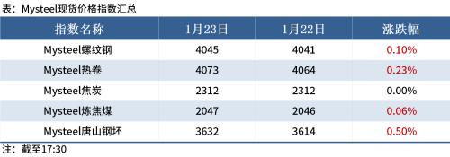 ◎ 1月23日,唐山迁安普方坯资源出厂含税上调10,报3600元/吨。