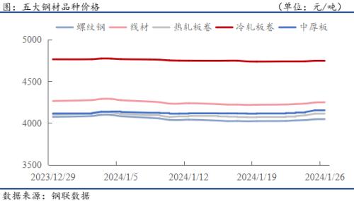 本周,全国主要市场五大品种钢材均价齐上涨。其中,螺纹钢、高线、热轧板卷、冷轧板卷、中厚板分别累计上涨24元/吨、30元/吨、38元/吨、9元/吨、43元/吨。