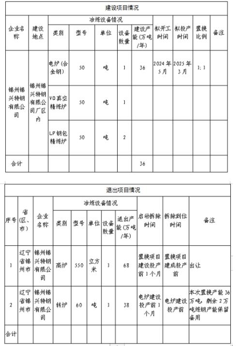 按照《国务院关于化解产能严重过剩矛盾的指导意见》《国务院关于钢铁行业化解过剩产能实现脱困发展的意见》和《钢铁行业产能置换实施办法》要求,现将锦州锦兴特钢有限公司建设项目产能置换方案予以公示,欢迎社会公众进行监督。