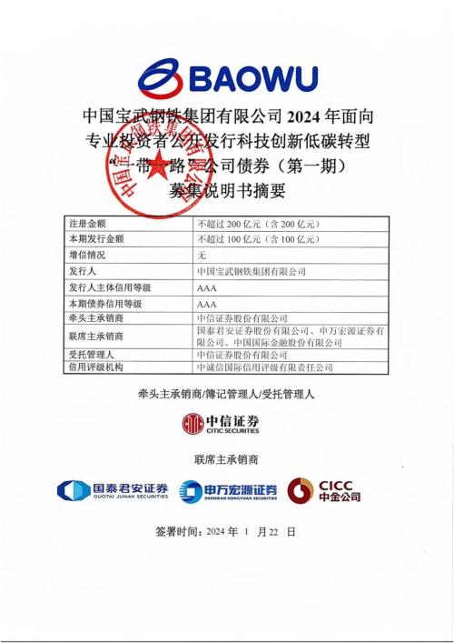 1月24日,中国宝武钢铁集团有限公司宣布发行科技创新低碳转型“一带一路”公司债券(第一期),为推动绿色转型注入新的动力。