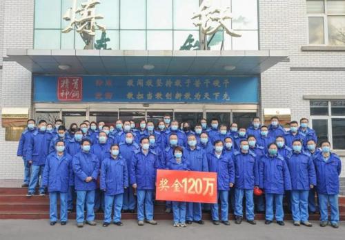 2021年4月9日,一身正装的刘国友从集团领导手中接过奖杯和证书后说:以高效制造、绿色制造、智能制造为方向,探索高炉可持续发展新道路。
