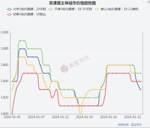 由“成都钢铁网钢材终端数据库”显示,本周京津冀市场价格整体稳中弱调,累计下调幅度20-30元/吨。年底工地需求停滞,商家陆续收尾工作,市场氛围愈发冷清,现货价格小幅弱调。具体各地区市场价格来看,现北京河钢三级抗震大螺纹报价为3830元/吨,较周一(3860元/吨)累计下调30元/吨,较1月初(3840元/吨)累计下调10元/吨;天津河钢三级抗震大螺纹报价为3850元/吨,较周初(3860元/吨)累计下调10元/吨,较1月初(3840元/吨)累计上涨10元/吨;综合来看,现货价格调整幅度有限,临近年底,商家多随行就市出货为主,暂时无大幅波动空间。