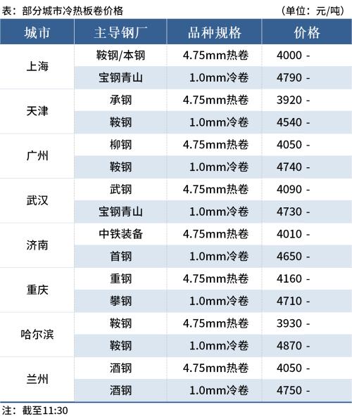 ◎济南:7日早盘热卷市场价格稳,4.75mm普卷主流4010元/吨,低合金市场报价4160元/吨,货少。(单位:元/吨)