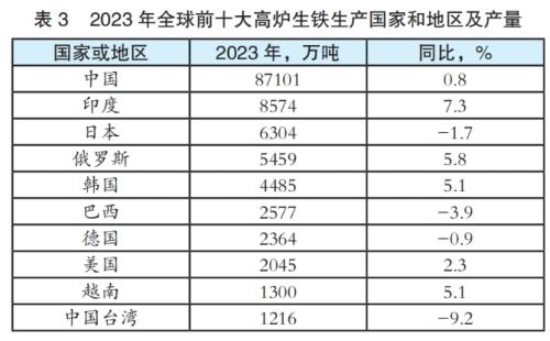 根据世界钢铁协会的统计数据,2023年37个国家和地区高炉生铁产量为12.865亿吨,同比增长0.5%。2022年,这37个国家和地区的高炉生铁产量约占全球产量的98%。