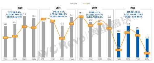 2023年TV面板需求呈“倒V”型,全年面板出货量同比减少12.3%