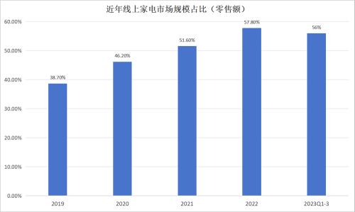 近年线上家电市场规模占比(零售额)