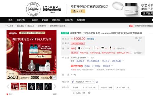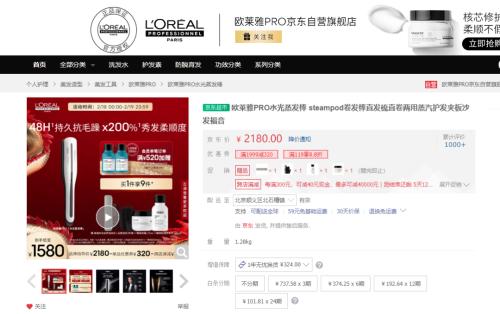 此次欧莱雅推出的吹风机,将在2024年年中在欧洲市场推出,计划于同年年底引进中国市场,其产品售价在400美元内(约合人民币2800元左右),比肩戴森的定价与其水光蒸发棒定位相同,同样走高端路线。以京东平台为例,如下图所示,欧莱雅PRO水光蒸发棒、水光蒸发棒4.0的售价分别为2180元、3000元。