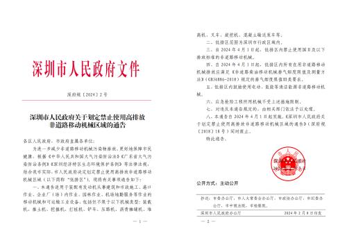 近日,深圳市政府发布《深圳市人民政府关于划定禁止使用高排放非道路移动机械区域的通告》,采取行动进一步改善城市空气质量。根据《通告》,从2024年4月1日起,全市行政区域内将被划定为低排放区域(简称“低排区”),在其中将禁止使用国Ⅱ级及以下排放标准的非道路移动机械,切实加强生态环境保护。