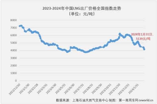 除需求外,影响天然气重卡市场另一大因素——气价,在2023年最后一个季度并不“友好”,2023年6-8月,LNG价格较年初(1月份气价约7000元/吨)大幅下降,平均价格还不足4100元/吨,9月份开始气价有所回升,11月平均气价达到5400元/吨左右, 12月平均气价已接近6000元/吨,天然气重卡的经济性优势在2023年年末下降了许多;2024年1月份,天然气价格较去年12月份有所下降(约5300元/吨),不过这个气价在需求有限的情况下对购车意愿刺激很有限,最近两月天然气重卡6000余辆的销量,其实就是终端市场对需求和气价双重影响下的真实回应。