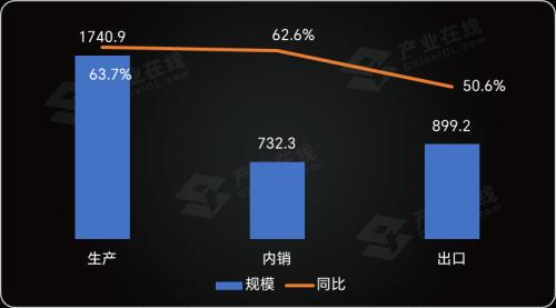 据产业在线监测数据显示,2024年1月家用空调生产1740.9万台,同比增长63.7%;销售1631.5万台,同比增长55.8%。其中内销732.3万台,同比增长62.6%;出口899.2万台,同比增长50.6%。库存小幅下降4.3%。