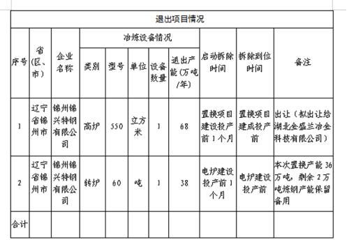 按照《国务院关于化解产能严重过剩矛盾的指导意见》《国务院关于钢铁行业化解过剩产能实现脱困发展的意见》和《钢铁行业产能置换实施办法》要求,现将锦州锦兴特钢有限公司建设项目产能置换方案予以公告,欢迎社会公众进行监督。
